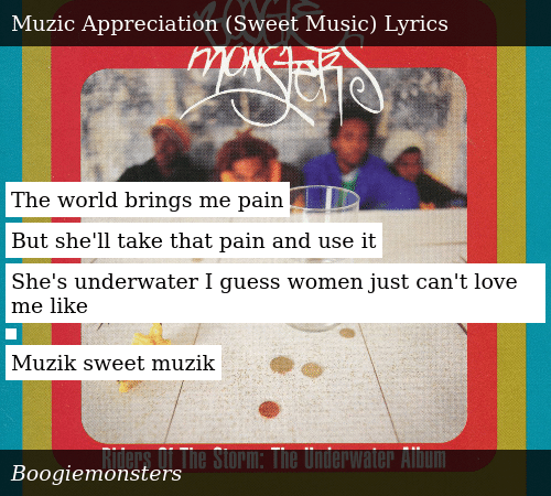 Quoting lyrics from the 90s band R&B band - BOOGIEMONSTERS, song “Muzic Appreciation”